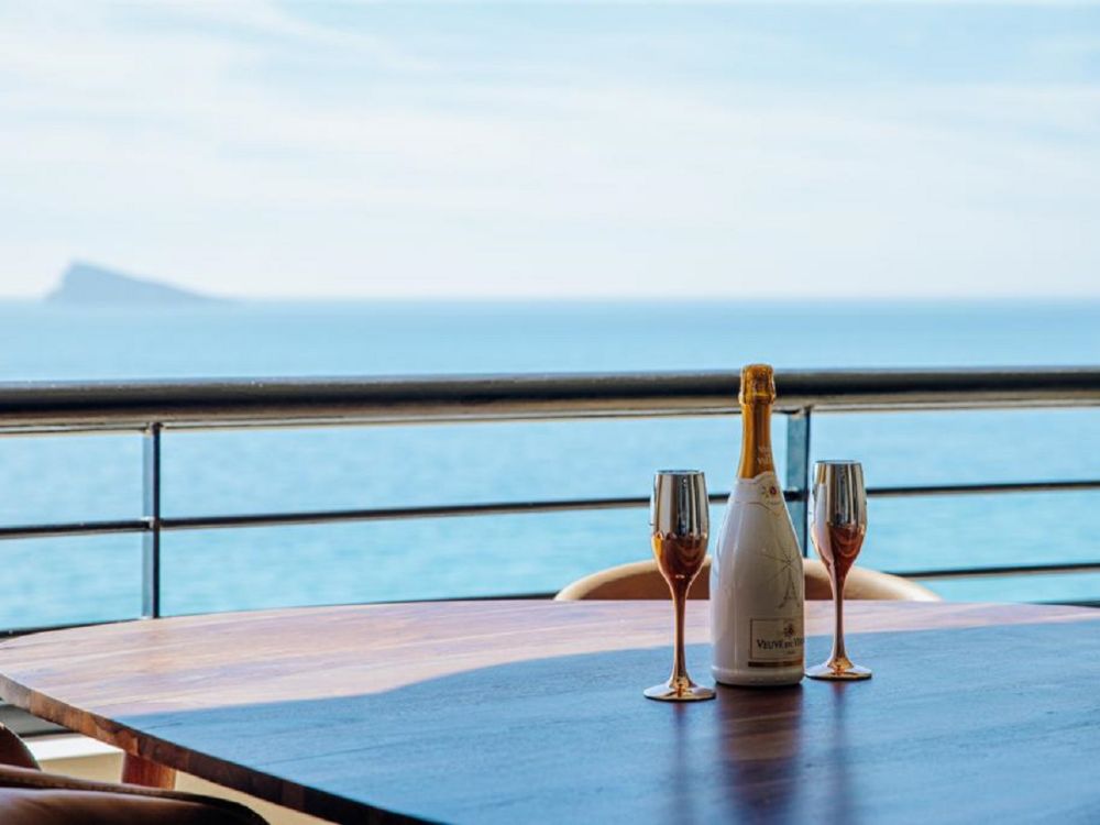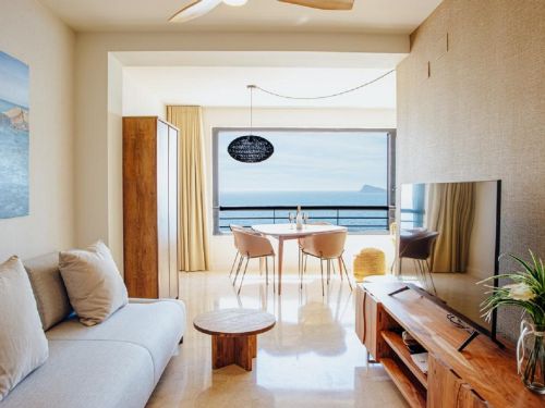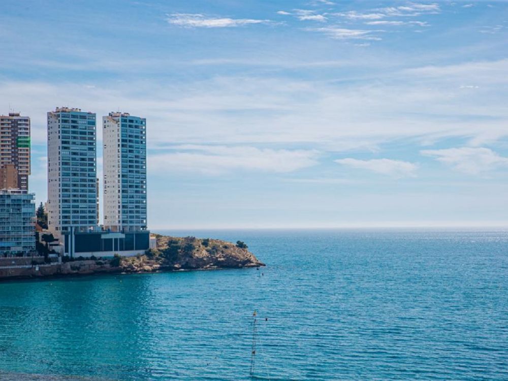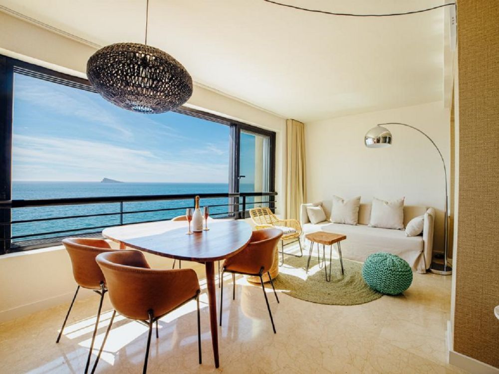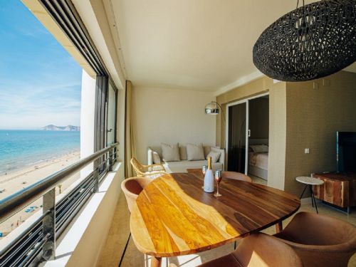 Luxury apartment on the first line of Levante Beach, Av. Madrid in Benidorm (Alicante). It has 1 bedroom and capacity for 4 people. 45m2 accommodation with frontal views of the Mediterranean Sea located on the 8th floor: