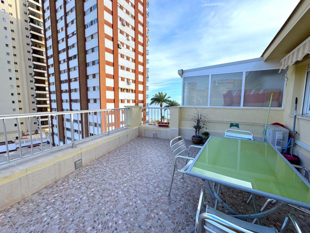 Large penthouse on Avenida Alcoy, first line of Levante Beach, a few meters from the Plaza Triangular. It has 3 bedrooms and capacity for 5 people. 90m2 apartment with huge terrace and lateral views of the Sea, located on 6th floor: