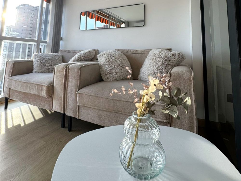 Modern apartment on Avenida Mediterraneo, 100m from Levante Beach, Rincn de Loix in Benidorm (Alicante). Studio with capacity for 2 people. 41m2 accommodation with frontal views of the Mediterranean Sea located on the 13th floor.