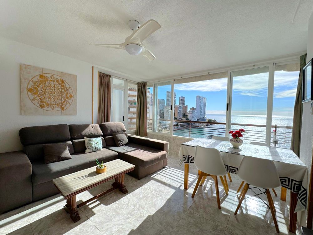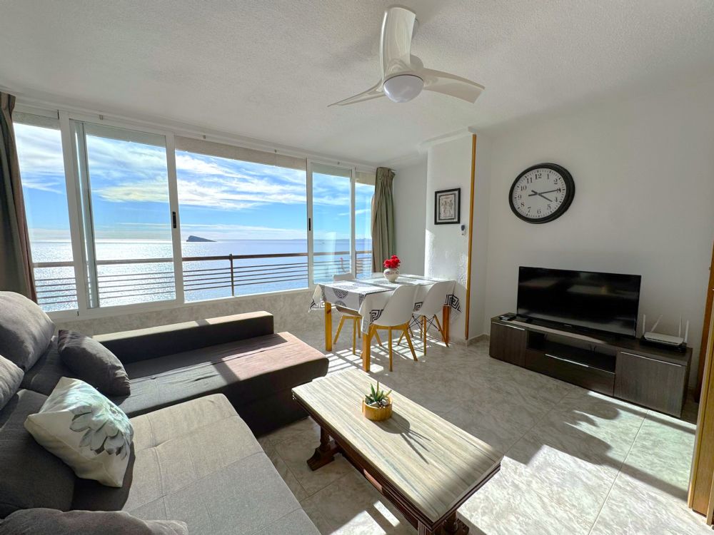 Nice apartment on the seafront of the Levante Beach, Rincn de Loix in Benidorm (Alicante). It has 1 bedroom and capacity for 4 persons. 60m2 accommodation with frontal views of the Mediterranean Sea. This spacious apartment is on the 12th floor.