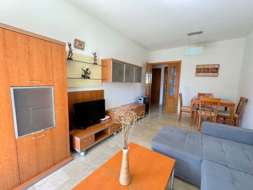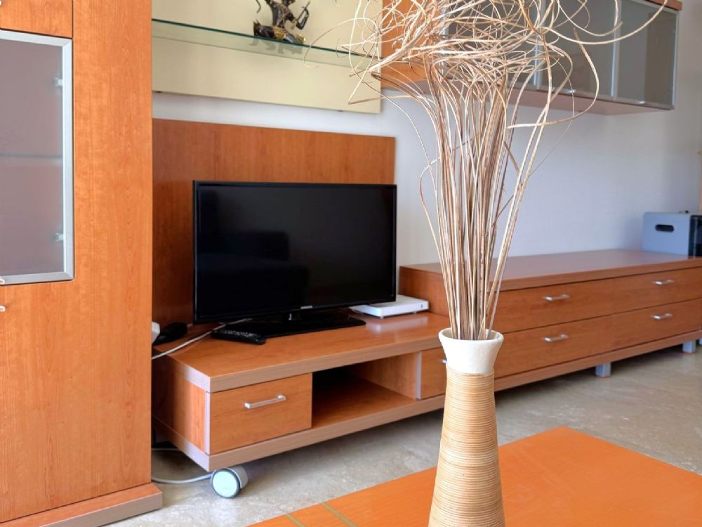 - El saln-comedor cuenta con un cmodo sof-cama y mueble con TV.